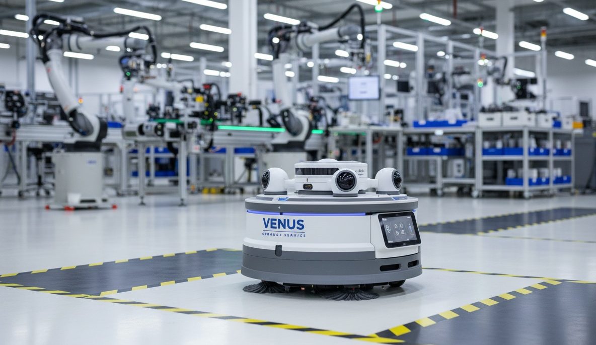 Roboter reinigt Fabrikboden